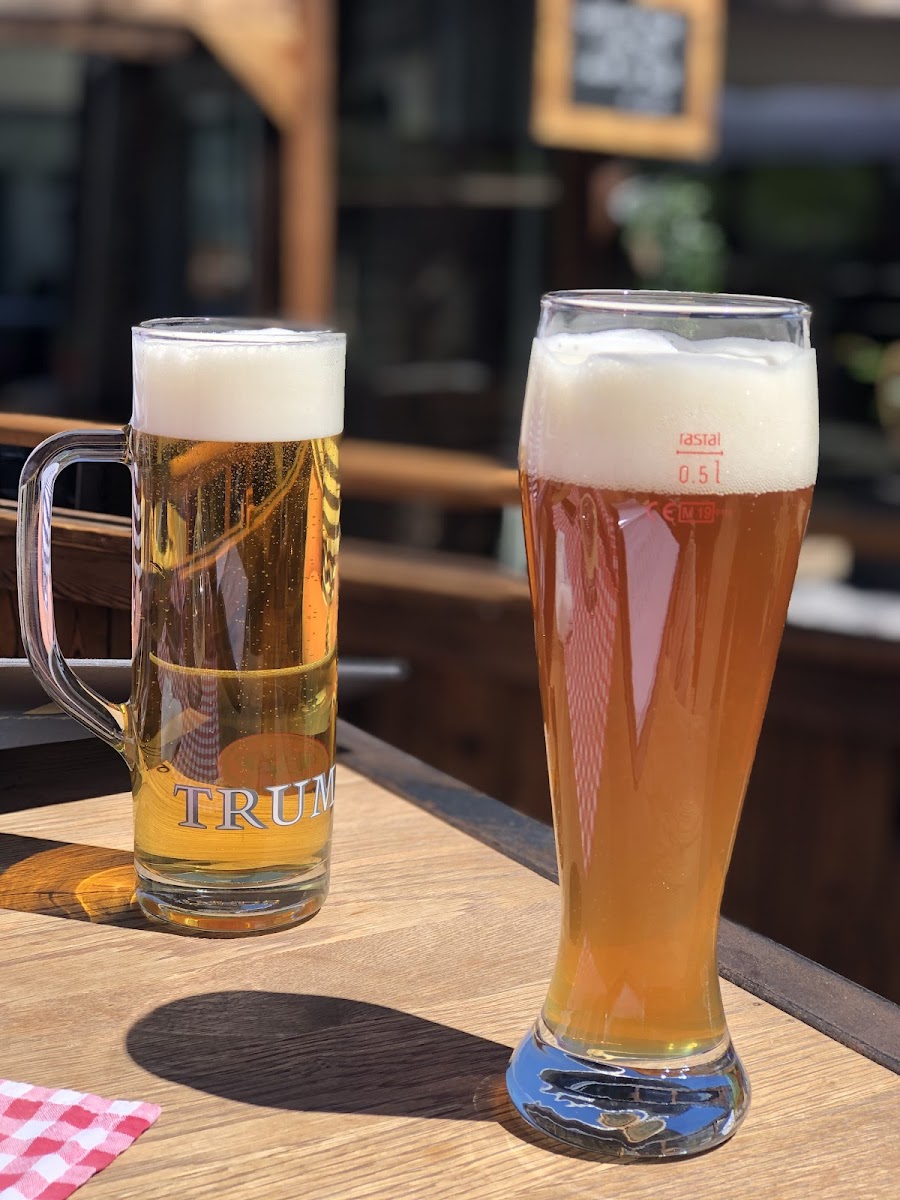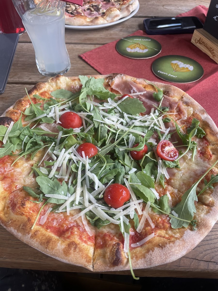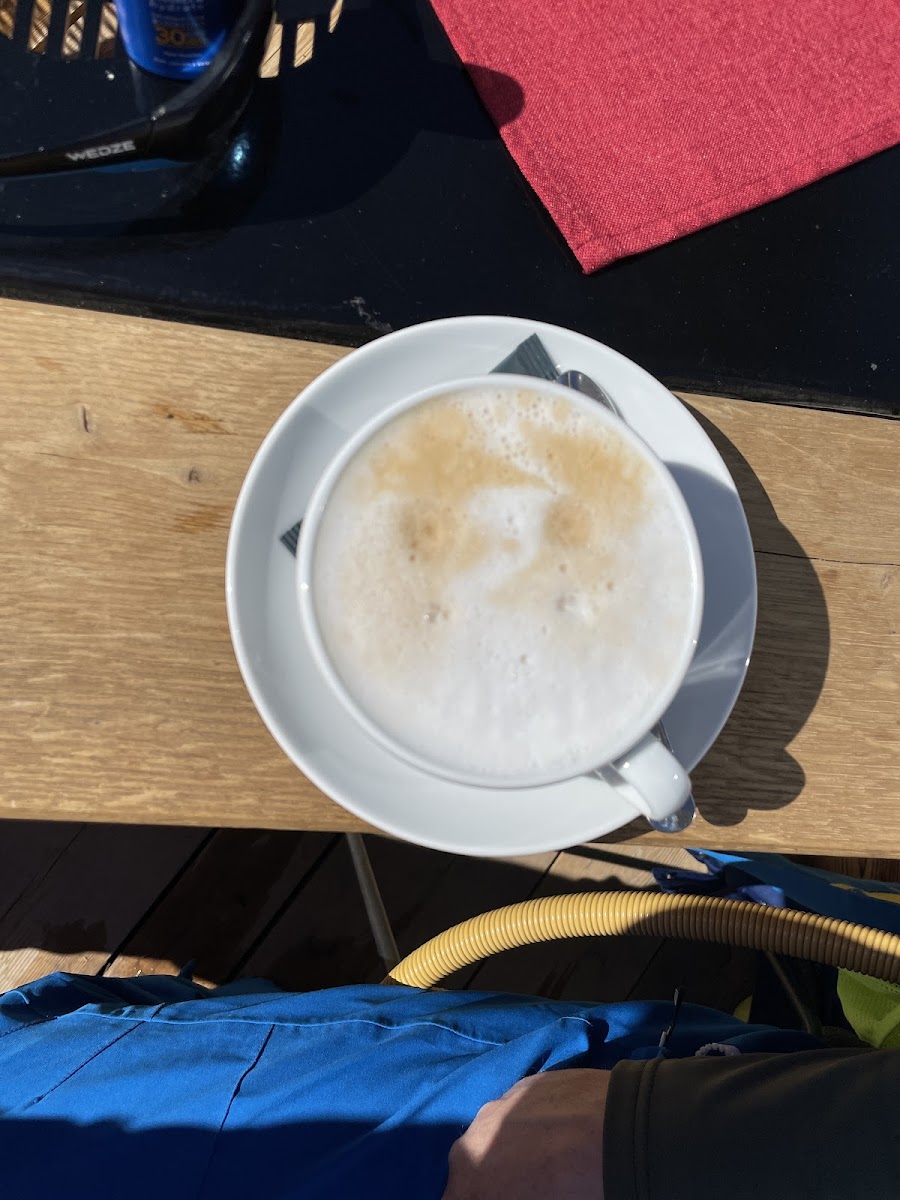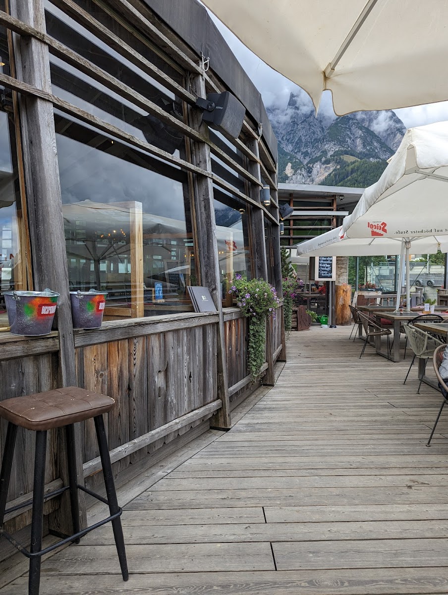 Very nice! A great place to sit and watch the riders and bikes come down. Good coffee in the morning, beer and pizza later. The staff were excellent, all of them. Also good English which was helpful for me! Very relaxed.